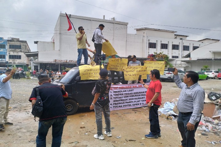 Didepan kantor Bupati Bungo, pendemo meminta kepada Bupati Bungo dan Dinas Instansi terkait Resto dan Cafe yang diduga dijadikan tempat maksiat dan menjual minuman keras dan menyediakan wanita penghibur tersebut langsung di segel dan di proses sesuai dengan aturan dan hukum yang berlaku.