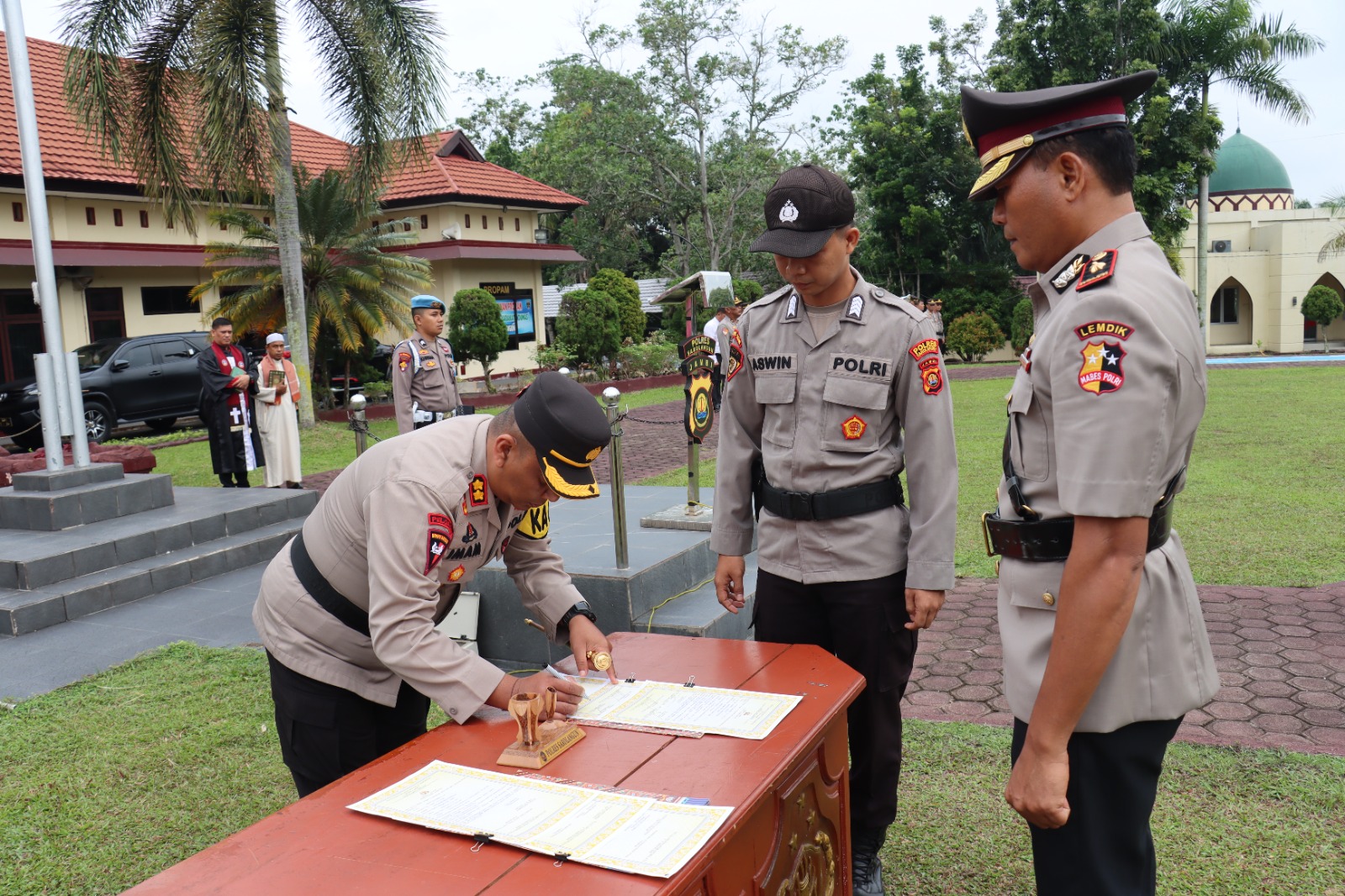 Dalam kegiatan Serah terima jabatan, Kapolres Sarolangun AKBP Imam pimpin pengambilan sumpah jabatan terhadap pejabat baru Wakapolres Sarolangun dan Kabag Logistik dilanjutkan penanda tanganan Dokumen serah terima jabatan dan sumpah jabatan.