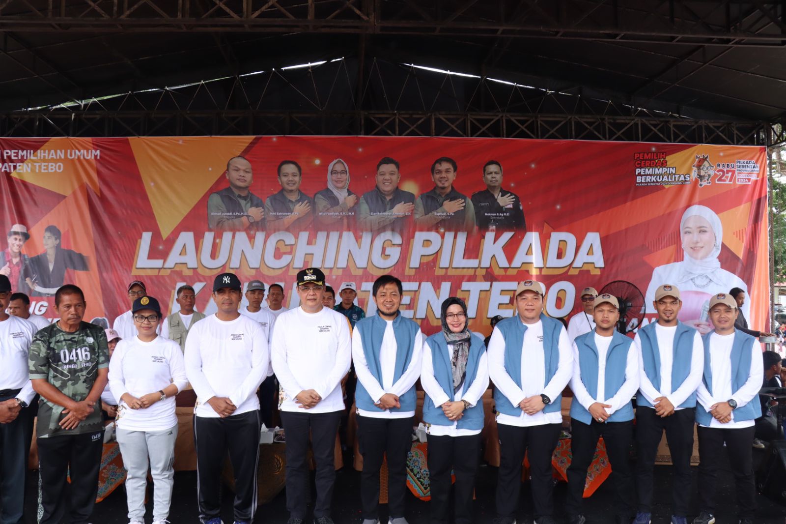 Acara puncak Launching Pilkada dimulai pukul 07.00 WIB dan dihadiri oleh berbagai pejabat penting, termasuk Pj. Bupati Tebo Dr. H. Varial Adhi Putra, Kapolres Tebo AKBP Dr. I Wayan Arta Ariawan, serta Ketua KPU Kab. Tebo Atiul Fuadiyah. Kegiatan ini juga dihadiri oleh masyarakat yang antusias, dengan jumlah mencapai ±1000 orang.