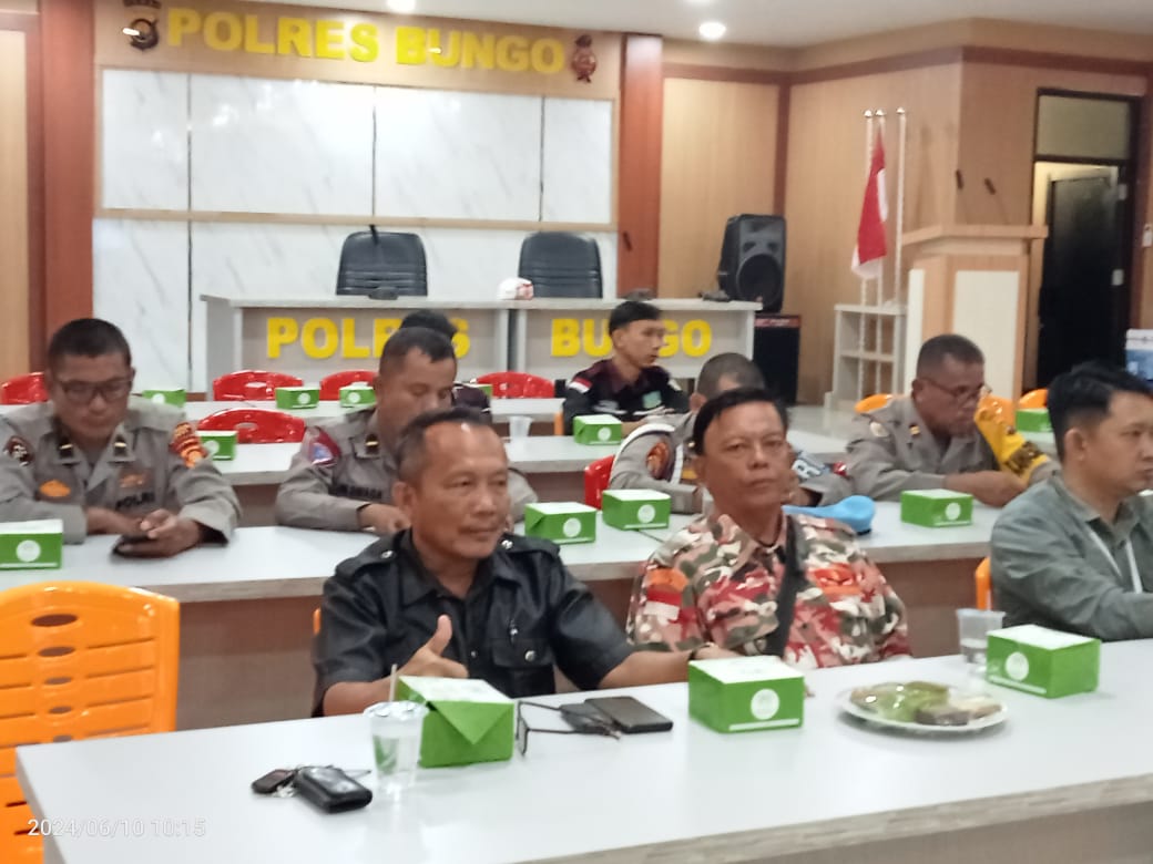 InfoNegeriJambi.com, BUNGO – Bertepatan Hari ini Senin tanggal 11Juni 2024 Markas Cabang Laskar Merah Putih Perjuangan Kabupaten Bungo bersama anggota nya menghadiri acara di polres Bungo yang bertempat di aula lantai II Polres.