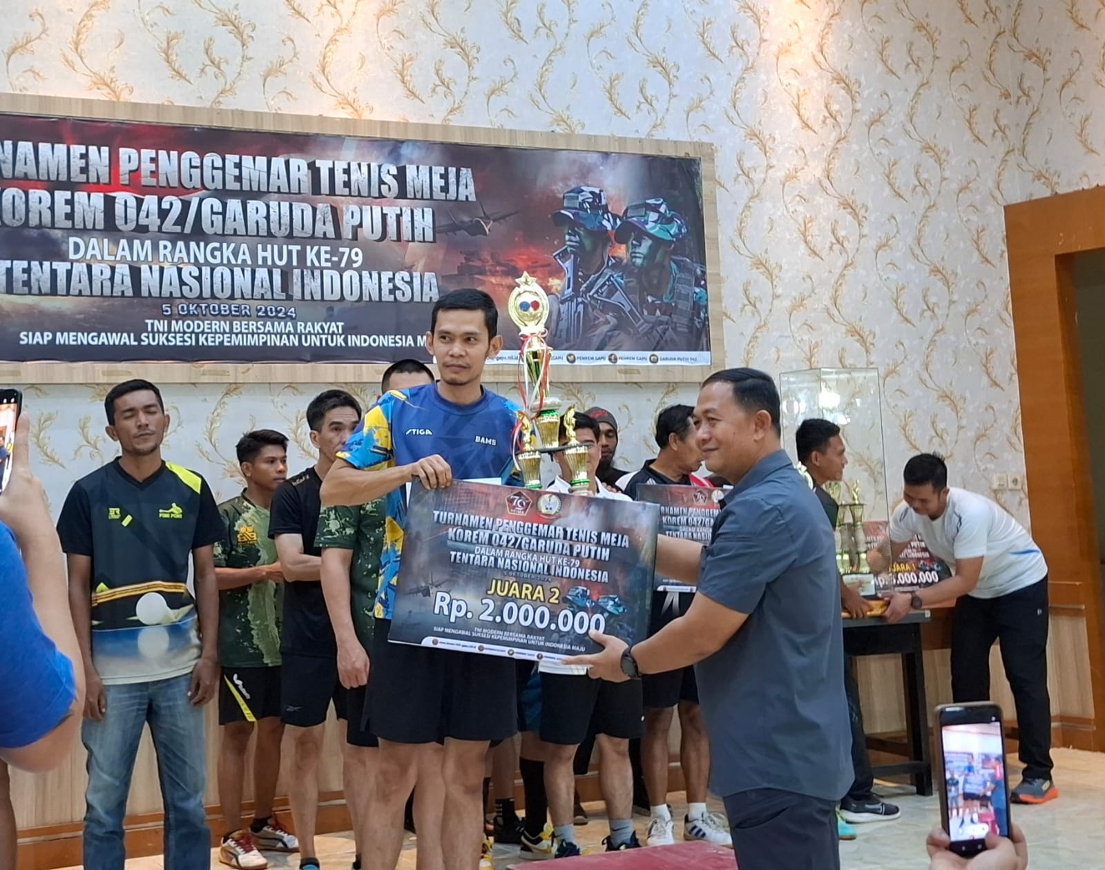 Komandan Korem 042/Gapu Brigjen TNI Rachmad, S.I.P diwakili Kepala Seksi Intelijen (Kasi Intel) Korem 042/Gapu, Kolonel Inf Imasfy SE dalam penutupan turnamen ini menyampaikan, kegiatan ini tidak hanya meningkatkan prestasi para penggemar, tetapi juga menjaga hubungan baik dan semangat kebersamaan antar penggemar tenis meja di seluruh Provinsi Jambi.