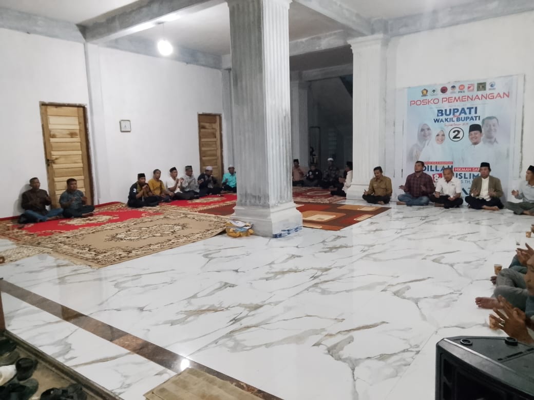 Pantauan awak media ditempat acara doa bersama, terlihat puluhan tim Merata Semua berkumpul melakukan doa bersama untuk kemenangan Paslon Dilla Muslimin.