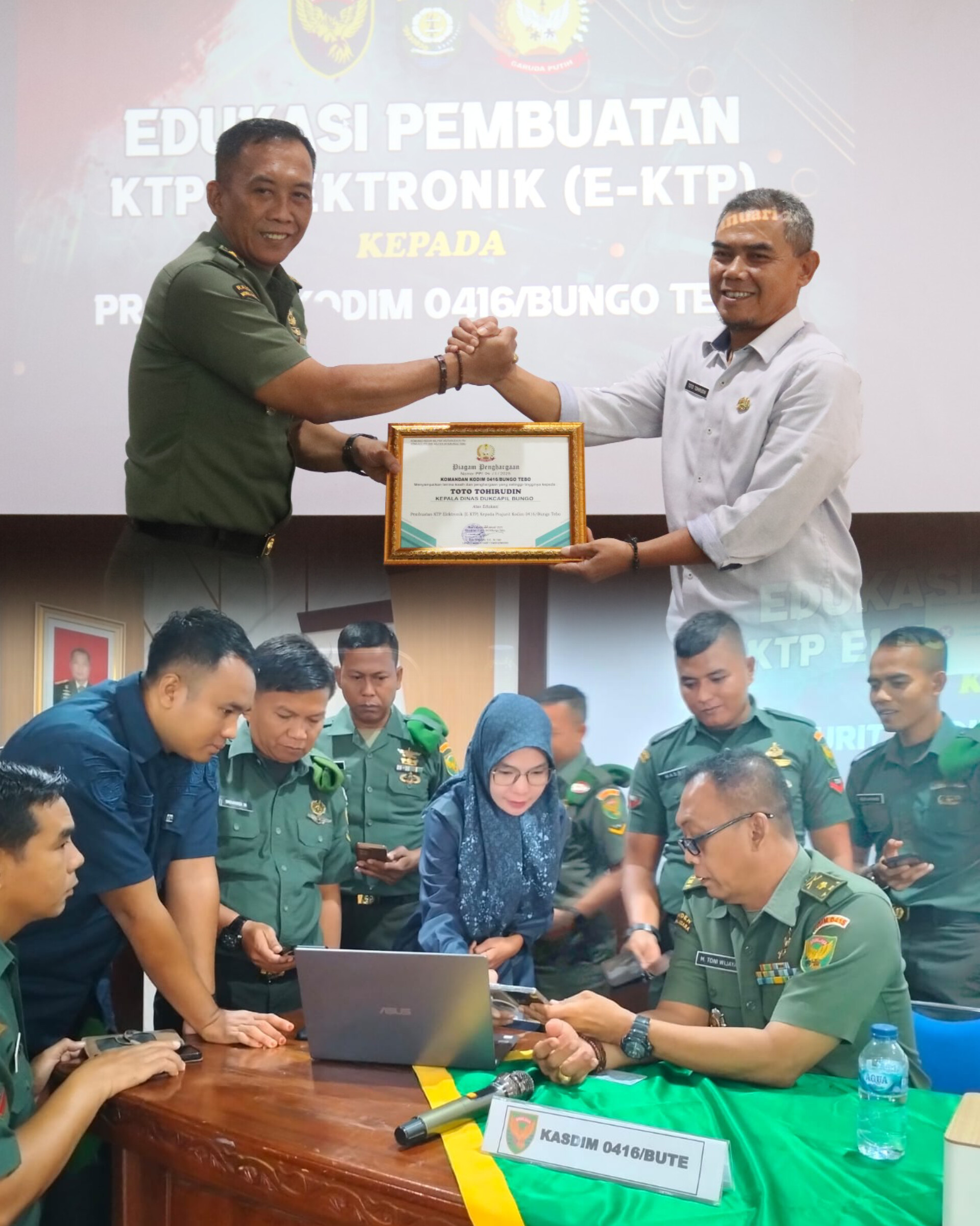 Komandan Kodim 0416/Bute, Letkol Inf Arief Widyanto, S.E., M.Han, melalui Kasdim 0416/Bute, Mayor Inf M. Tony Wijaya, menyampaikan apresiasinya atas edukasi yang diberikan oleh Dukcapil. Menurutnya, kegiatan ini sangat bermanfaat, terutama dalam memberikan wawasan kepada prajurit Kodim dan keluarga besar TNI mengenai pentingnya administrasi kependudukan, khususnya E-KTP.
