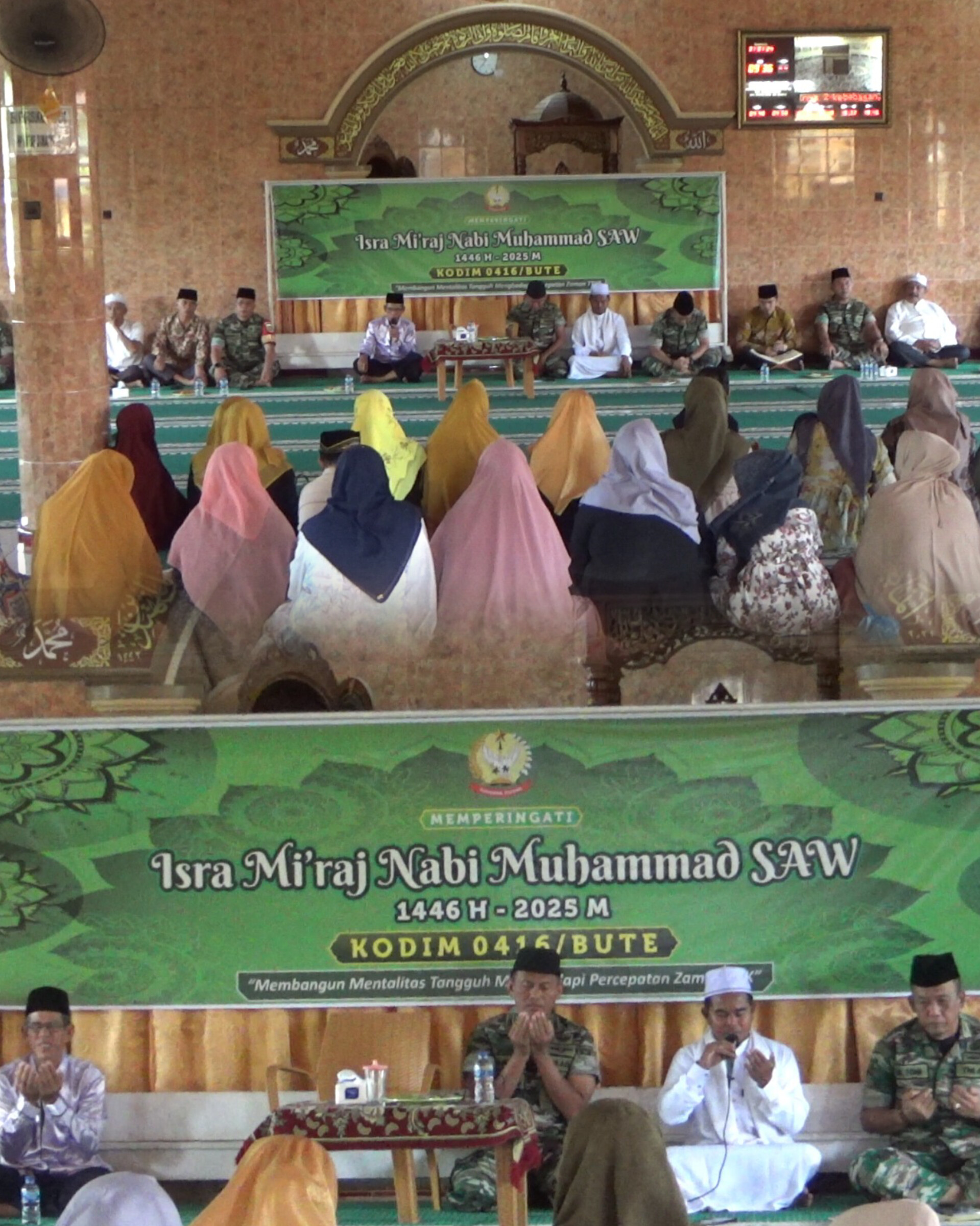Dandim 0416/Bute Letkol Inf Arief Widyanto, S.E., M.Han melalui Kasdim 0416/Bute Mayor Inf M. Tony Wijaya dalam menyampaikan bahwa peringatan Isra Mi’raj ini menjadi momentum penting bagi prajurit TNI untuk memperkuat keimanan, disiplin, dan semangat pengabdian kepada bangsa dan negara.