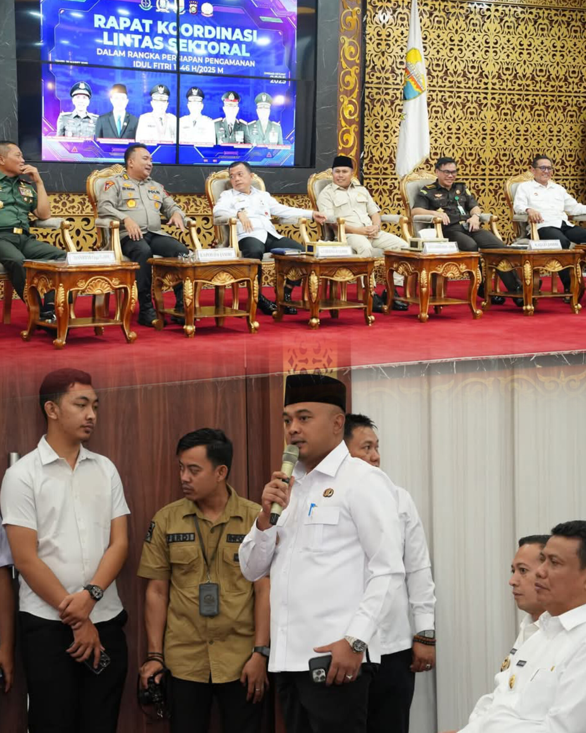 KOTA JAMBI – Bupati Tebo, Agus Rubiyanto, SE, MM, menghadiri Rapat Koordinasi Lintas Sektoral Forum Koordinasi Pimpinan Daerah (Forkopimda) yang diselenggarakan di Ruang Pola Kantor Gubernur Jambi pada Rabu, 19 Maret 2025. Rapat ini bertujuan untuk memperkuat sinergi antarinstansi dalam menjaga stabilitas daerah serta membahas berbagai isu strategis yang dihadapi oleh pemerintah daerah di Provinsi Jambi.
