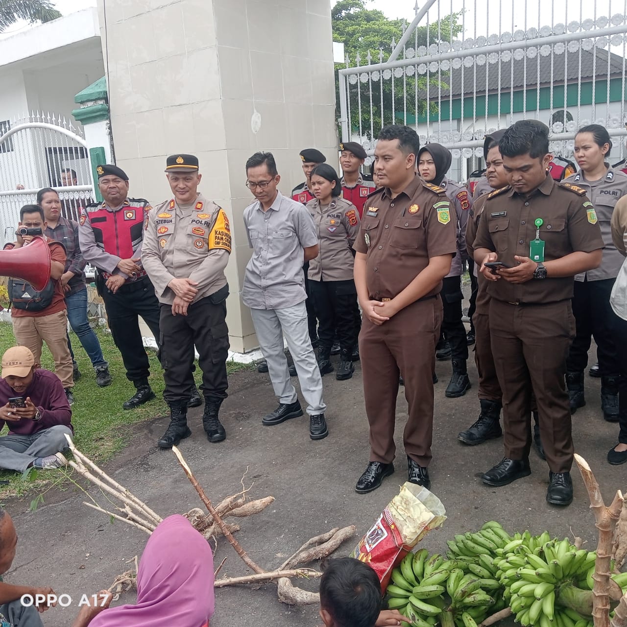 Kedatangan ratusan warga untuk melakukan aksi damai di depan kantor Kejari, terkait Rahmat warga Desa Sungai Bungur yang dilaporkan Kadesnya untuk dibebaskan dari hukum.
