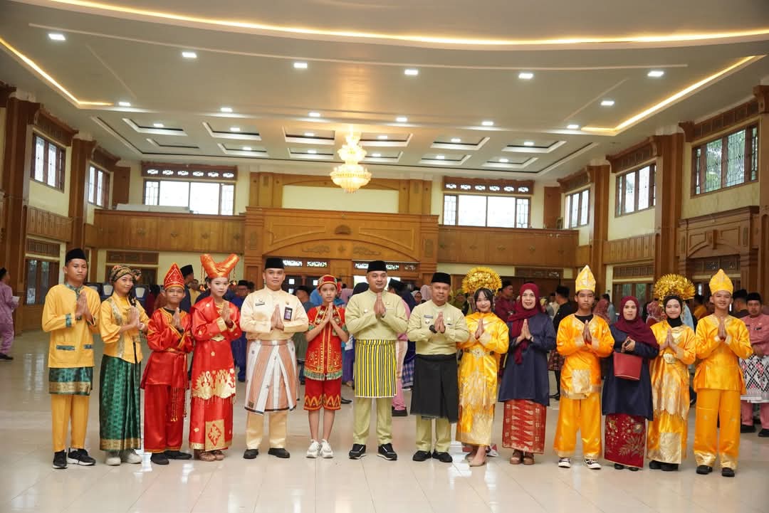 TEBO – Bupati Tebo, Agus Rubiyanto, SE.MM, didampingi Wakil Bupati Tebo, Nazar Efendi, SE.M.Si, memimpin upacara peringatan Hari Pendidikan Nasional (Hardiknas) Tahun 2025 yang dilaksanakan di Aula Kantor Bupati Tebo pada hari Jumat, 2 Mei 2025. Kegiatan ini dihadiri oleh sejumlah pejabat daerah, para guru, pelajar, serta tokoh masyarakat yang turut menyemarakkan peringatan hari bersejarah bagi dunia pendidikan nasional tersebut.