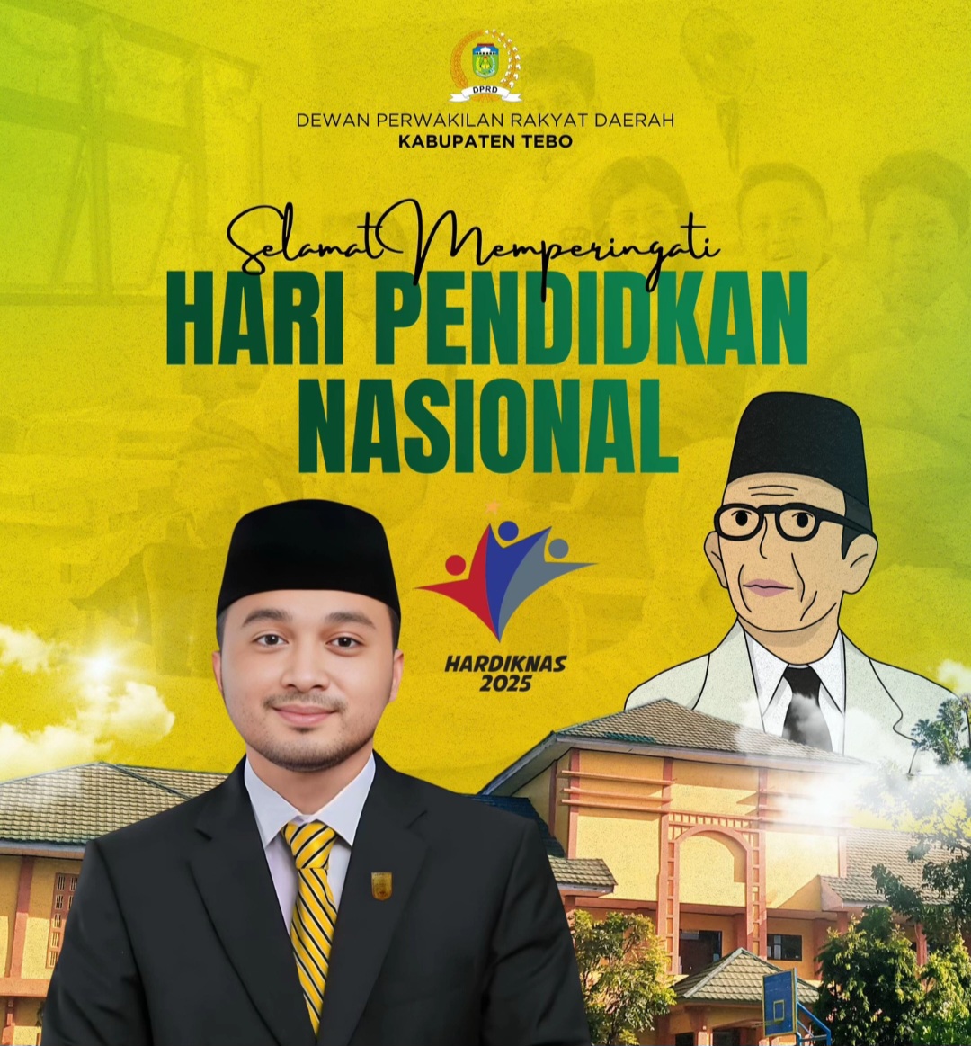 TEBO – Ketua DPRD Kabupaten Tebo, Khalis Mustiko, SH, menyampaikan ucapan selamat memperingati Hari Pendidikan Nasional (Hardiknas) 2025 kepada seluruh elemen masyarakat, khususnya insan pendidikan di Kabupaten Tebo. Dalam pernyataannya, ia menekankan pentingnya peran pendidikan sebagai fondasi utama dalam membentuk generasi yang cerdas, berakhlak, dan siap bersaing di era global.