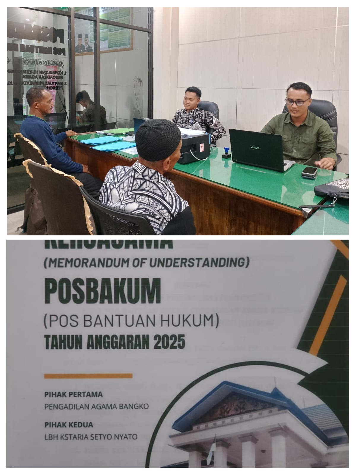 Direktur Posbakum dari LBH Kesatria Setio Nyato, Padri Zelvian, S.H., M.H., mengatakan pihaknya siap memberikan pendampingan hukum bagi masyarakat yang akan mengajukan perkara di PA Bangko.