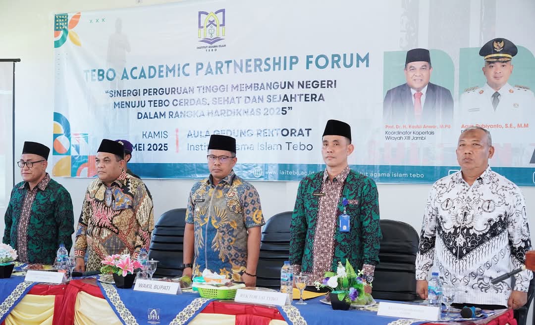 TEBO – Tebo Academic Partnership Forum resmi digelar di Aula Gedung Rektorat Institut Agama Islam (IAI) Tebo pada Kamis (15/05/2025). Kegiatan ini menjadi wadah strategis untuk memperkuat kolaborasi antara dunia akademik, pemerintah daerah, dan mitra pembangunan dalam mendorong kemajuan Kabupaten Tebo.