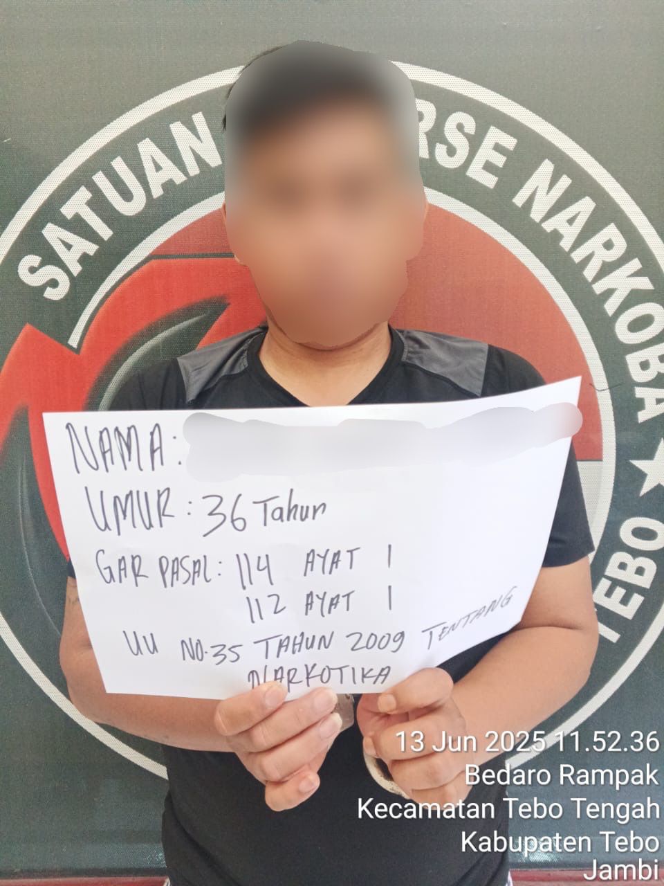 Kapolres Tebo AKBP Triyanto, S.I.K.,S.H.,M.H melalui Plt Kasi Humas IPDA Ardimal Hagia, S.E., M.E membenarkan adanya penangkapan tersebut dan menegaskan bahwa pihaknya tidak akan memberikan ruang bagi pelaku peredaran Narkoba di Wilayah Tebo.