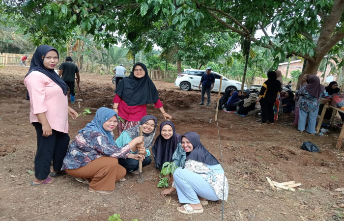 Mahasiswa Kukerta dan Ibu PKK Desa Mengupeh Tanam 60 Jenis Tanaman Herbal di Depan Kantor Desa