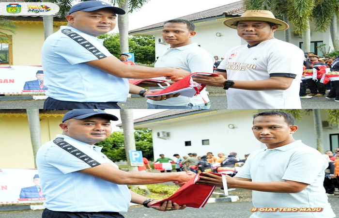 Acara dimulai dengan apel singkat yang digelar di halaman Rumah Dinas Bupati Tebo. Usai apel, dilakukan pembagian bendera merah putih kepada masyarakat, pelaku usaha, serta perwakilan perangkat desa dan kelurahan.