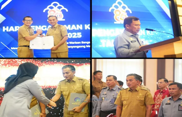 MUARO JAMBI – Wakil Bupati Muaro Jambi, Junaidi H. Mahir, secara resmi menerima Sertifikat Kekayaan Intelektual Komunal (KIK) atas pencatatan ciptaan Seni Ekspresi Budaya Tradisional Gambang Dano Lamo. Sertifikat tersebut diberikan kepada Komunitas Sanggar Mahligai Budayo di Desa Dano Lamo. Penyerahan dilakukan oleh Kepala Kantor Wilayah (Kakanwil) Kemenkumham Jambi, Jonson Siagian, dalam rangka peringatan Hari Pengayoman ke-80 tahun 2025 di Aula Kanwil Kemenkumham Jambi, Selasa (19/8/2025).
