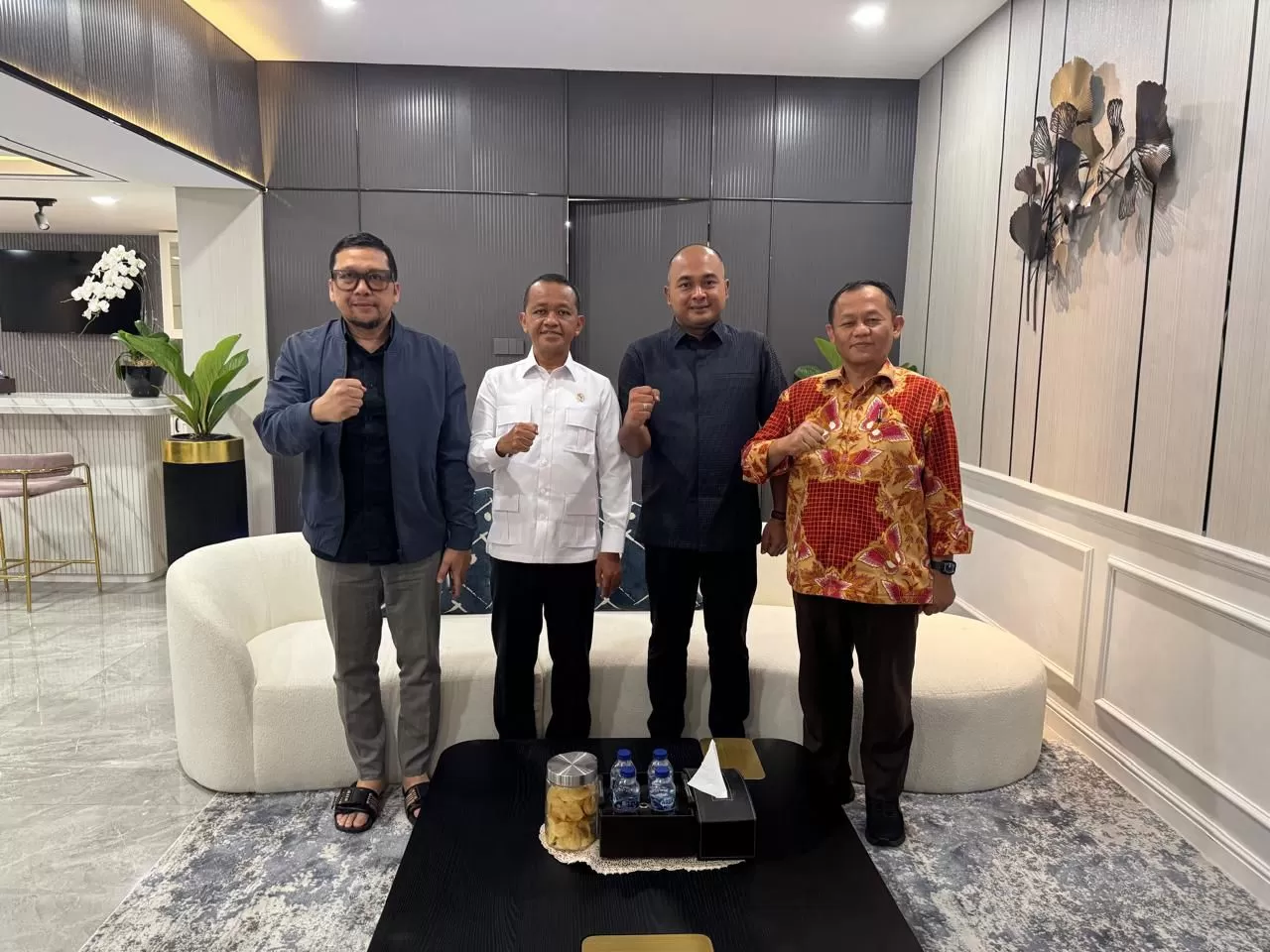 Bupati Tebo Agus Rubiyanto (kedua dari kanan) bersama Ketua Umum Partai Golkar sekaligus Menteri ESDM RI Bahlil Lahadalia (dua dari kiri), Sekretaris DPP Golkar Sarmuji (paling kanan), dan Wakil Ketua Umum DPP Golkar Ahmad Doli Kurnia Tanjung (paling kiri) saat pertemuan di kediaman Bahlil di Jakarta Pusat.(INJ/Ist)