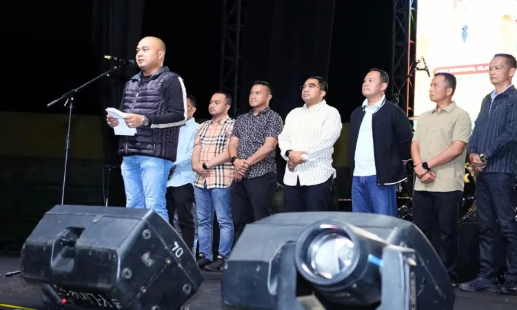 Panggung hiburan malam itu semakin meriah saat grup musik legendaris Tip-Ex tampil membawakan lagu-lagu andalan mereka. Sorak-sorai penonton membahana ketika lagu “Salam Rindu” dan “Ciuman Pertama” dinyanyikan. Masyarakat tampak larut dalam suasana gembira, bernyanyi dan menari bersama di tengah gemerlap lampu dan pesta kembang api.