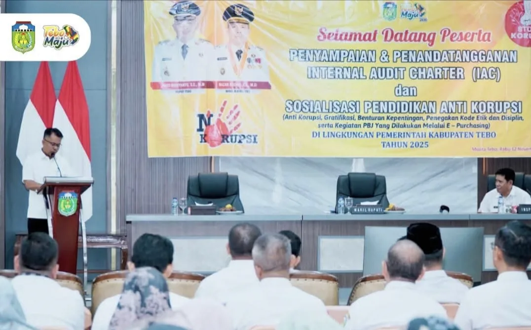 TEBO – Wakil Bupati Tebo, Nazar Efendi, S.E., M.Si., membuka secara resmi kegiatan Sosialisasi Pendidikan Anti Korupsi Tahun 2025 yang digelar di Pendopo Rumah Dinas Bupati Tebo, Rabu (12/11/2025). Kegiatan ini merupakan bagian dari langkah nyata Pemerintah Kabupaten Tebo dalam membangun budaya integritas di lingkungan pemerintahan serta masyarakat luas.