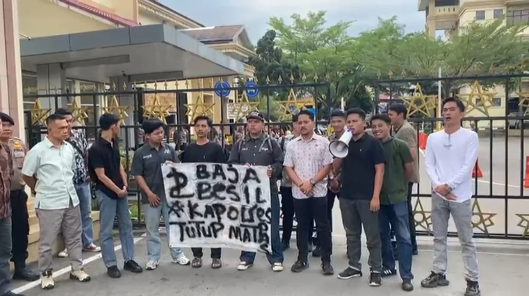 JAMBI – Aliansi Pemuda dan Mahasiswa Merangin menggelar aksi demonstrasi di depan Polda Jambi dan Ditpropam, Jumat (12/12/25) menuntut kejelasan hilangnya dua alat berat PETI yang sebelumnya diamankan di Polsek Jangkat. Dua alat berat tersebut diduga dilepaskan tanpa dasar hukum yang jelas.