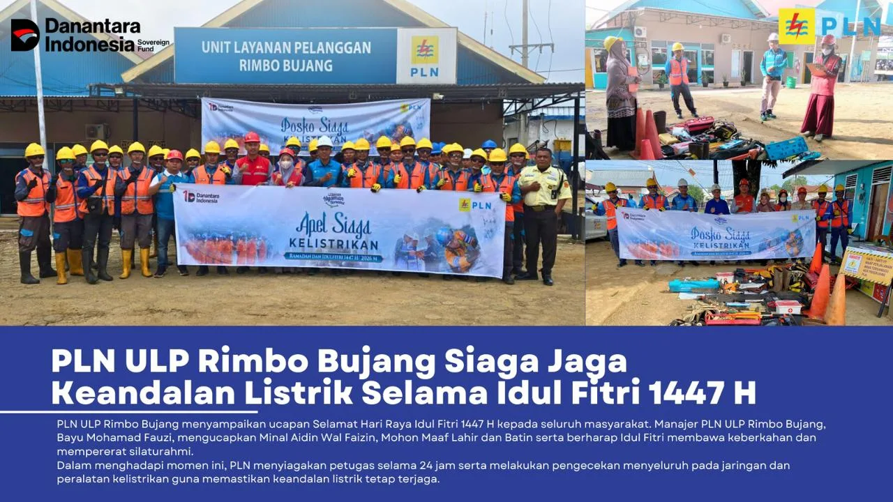 Tim Leader Teknik PLN ULP Rimbo Bujang, Zola Wahyu Andalas P, menyampaikan, “Kami menyiagakan seluruh personel serta melakukan pengecekan menyeluruh pada jaringan dan peralatan kelistrikan. Hal ini dilakukan agar masyarakat dapat menjalankan ibadah dan merayakan Idul Fitri dengan aman dan nyaman tanpa gangguan listrik.”