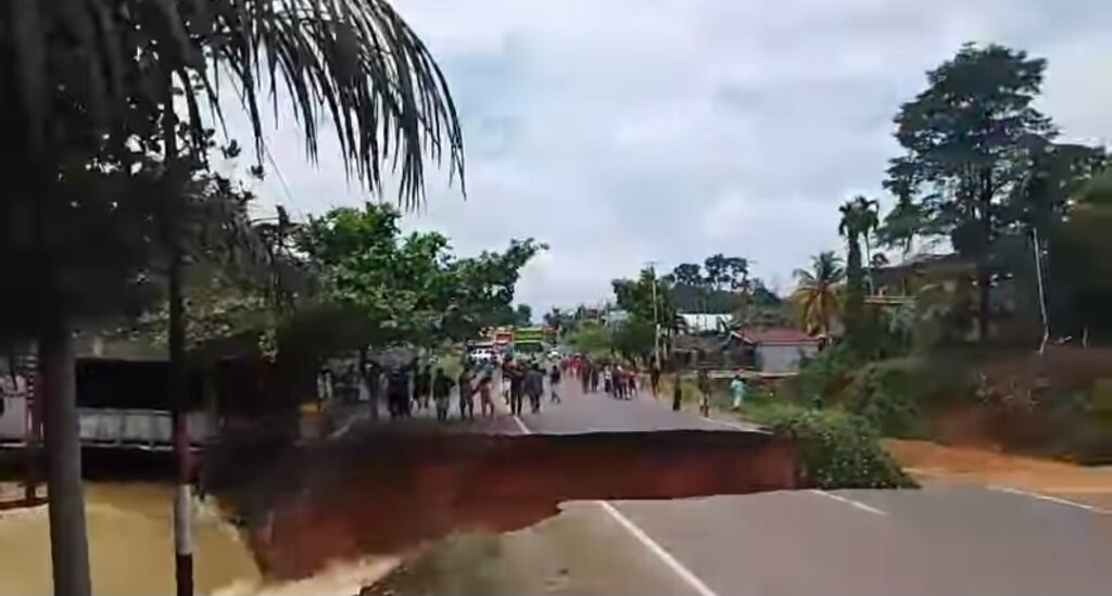 BUNGO – Jalan lintas Bungo – Dharmasraya mengalami putus total akibat saluran crosdrain yang jebol…